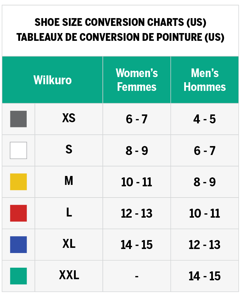 La dimension est basée sur votre "pointure" réelle et non sur "votre pointure". Pour les grosses chaussures volumineuses, augmentez d'une taille pour un meilleur ajustement.